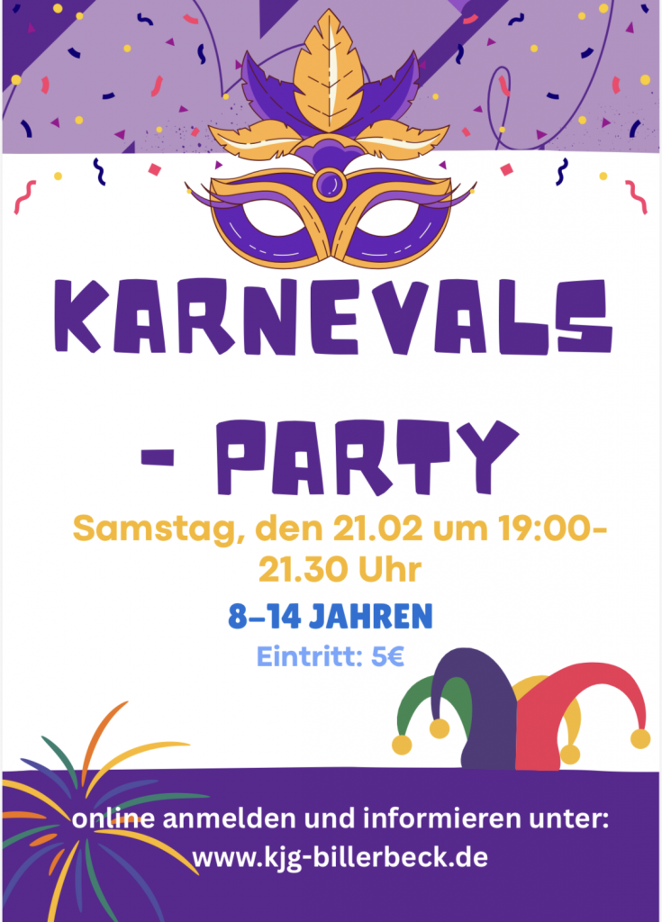 Am Samstag, den 21.02.2026, erwarten euch ein Kostümwettbewerb, ein leckerer Snack und jede Menge lustige Spiele und Spaß.